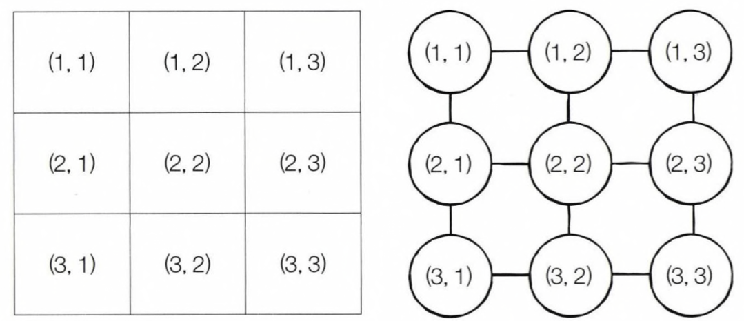 코딩 테스트 중 2차원 배열에서의 탐색 문제를 만나면 이렇게 그래프 형태로 바꿔서 생각하면 풀이 방법을 조금 더 쉽게 떠올릴 수 있다.