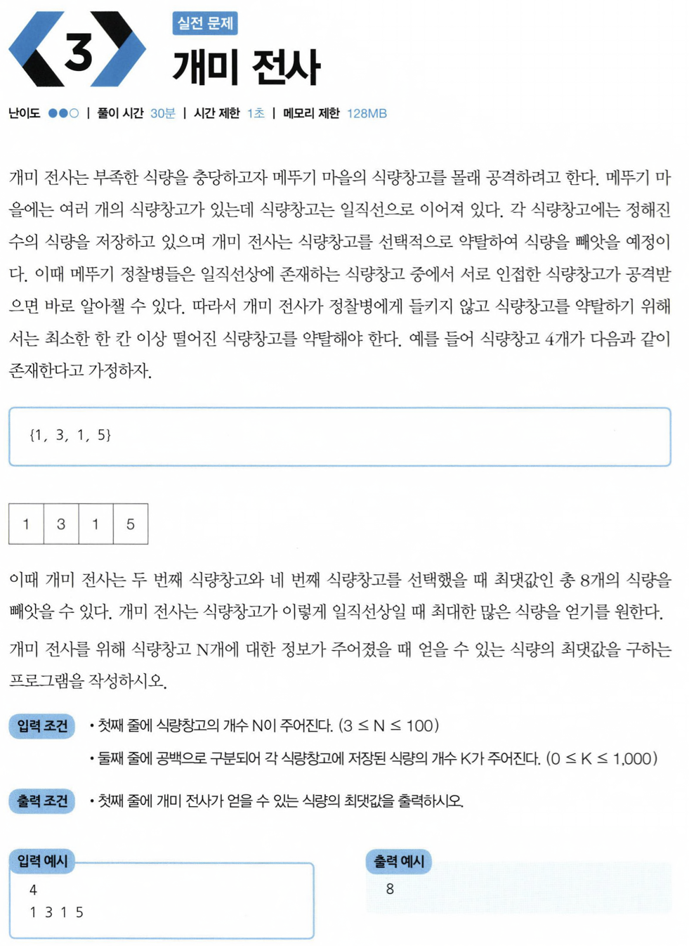 # 개미 전사 (전 dp가 너무 어려워요ㅠㅠㅠㅠ 이것도 점화식보고 풀었어요ㅠㅠㅠ)