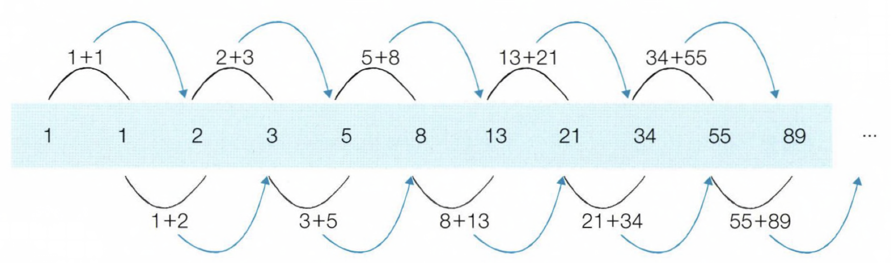점화식이란 인접한 항들 사이의 관계식을 의미하는데, 피보나치 수열의 점화식은 다음과 같이 표현가능하다.