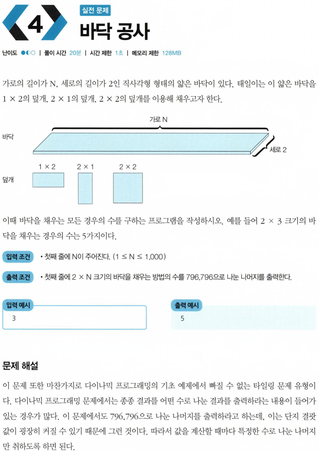 # 바닥 공사(이것도 점화식 보고 풀었어요..ㅠ)