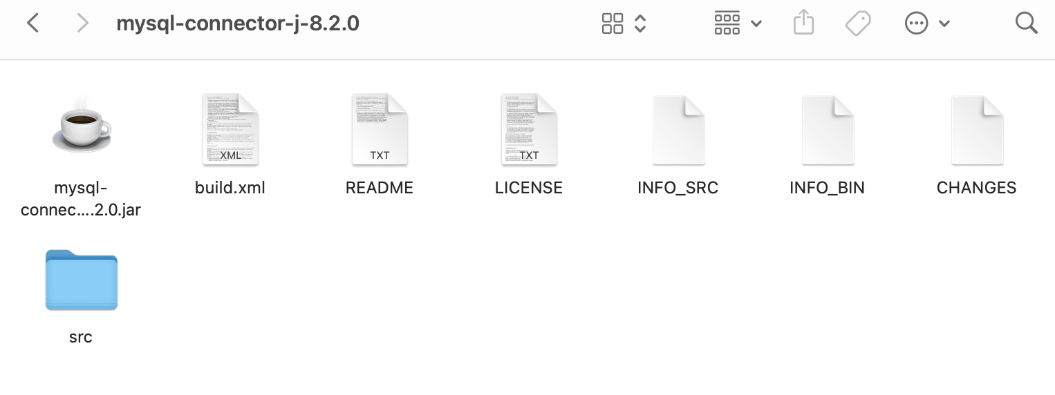 2. 설치가 끝나면 ZIP 파일을 압축해제한다. 그러면 아래와 같은 폴더가 나타날텐데, mysql-connector-java-8.2.0.jar 파일을 복사한다.