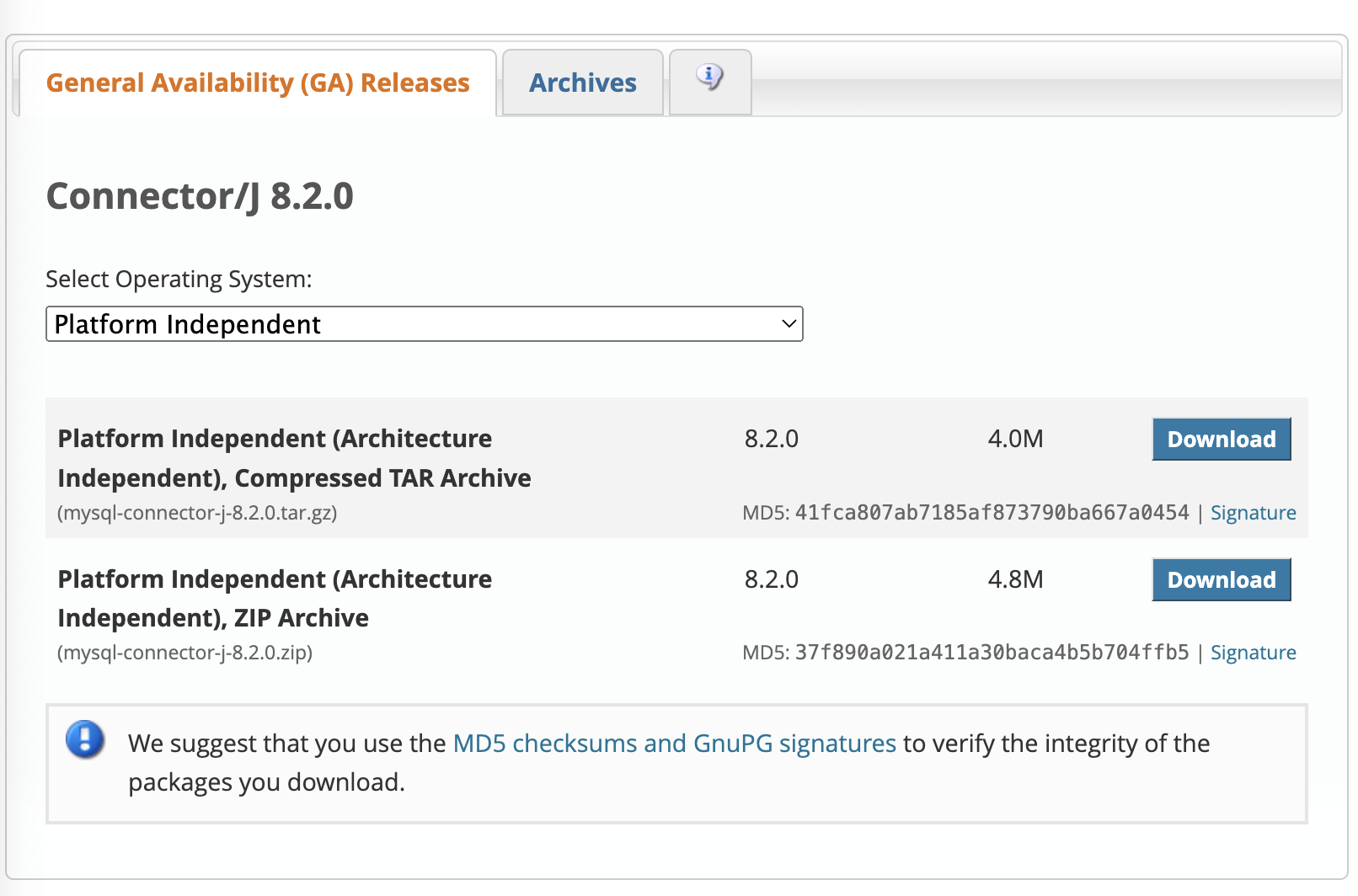 https://dev.mysql.com/downloads/connector/j/
