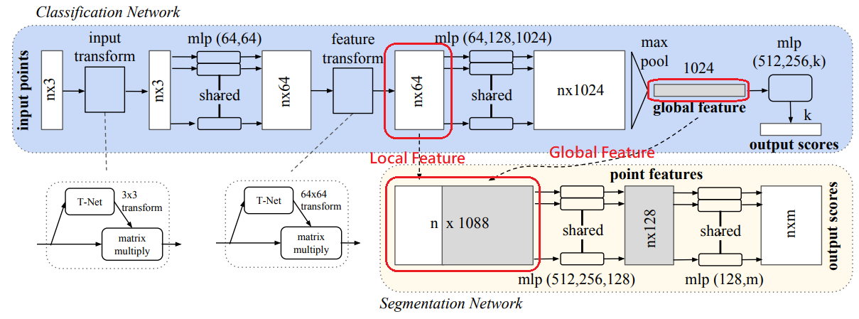 2. Local ๋ฐ Global ์ ๋ณด๋ฅผ ๊ฒฐํฉํ๋ ๊ตฌ์กฐ [PointNet ๊ตฌ์กฐ ๊ทธ๋ฆผ์์ ํ๋ ์์๋ถ๋ถ]