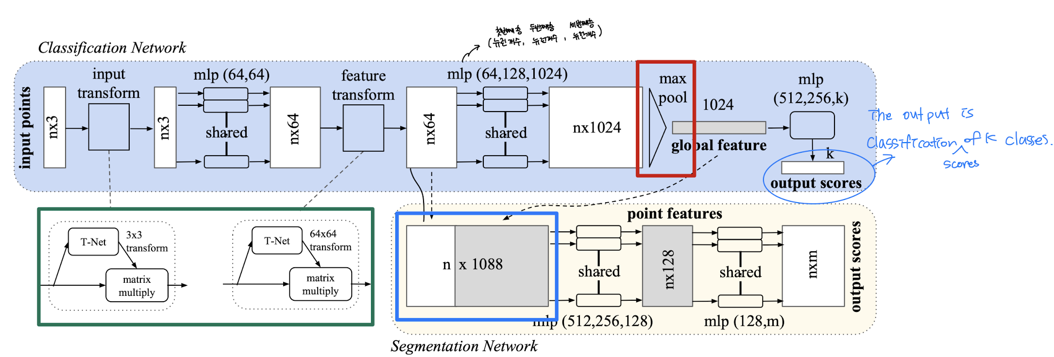 - classification network๋ n ๊ฐ์ points ๋ฅผ ์