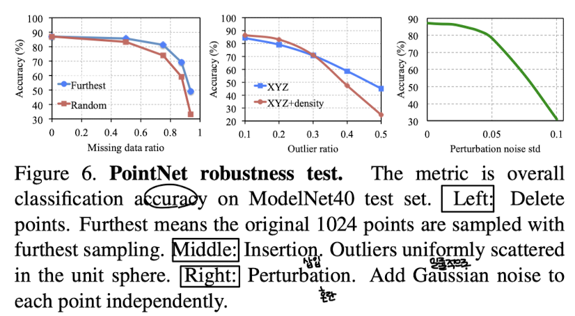=> ๊ฒฐ๋ก , ์ค์ํ ์ ์ ์์ง ์๋ ํ, ์ผ๋ถ ์ ์ด ์์ค๋๊ฑฐ๋ ์ถ๊ฐ๋์ด๋ ์ ์ญ ํน์ง์ ๋ณํ์ง ์๋๋ค. PointNet์ ๋ถํ์ํ ์ ์ด ์์ด๋ ํํ๋ฅผ ์ธ์ํ๋ ๋ฐ ๊ฒฌ๊ณ ํจ์ ๋ณด์ฌ์ค๋ค.