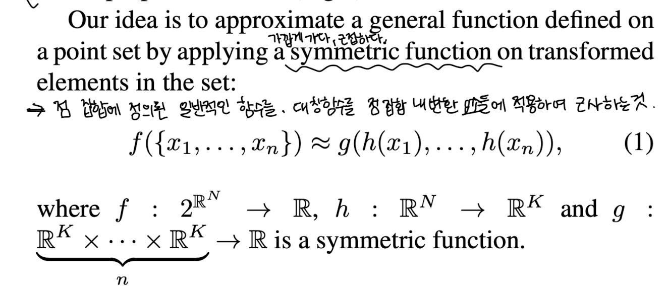 ผ๋ฌธ์์๋ input์ผ๋ก ๋ค์ด์ค๋ points๋ค์ ์์ด ๋ถ๋ณ์ฑ(Permutation invariance)์ ์ ๋ฐ์ํ์ฌ ์ง์ ์ ์ผ๋ก Point cloud๋ฅผ ์ฒ๋ฆฌํ๋ novel type์ neural network๋ฅผ design ํ์๋ค.