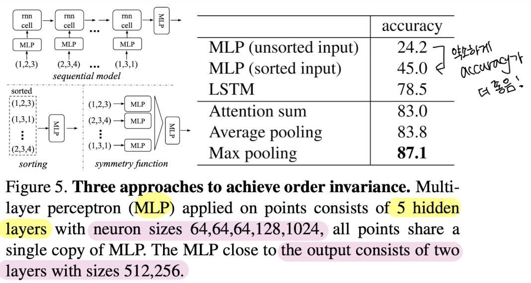 => ์ด๋ค ์์๋ก point๊ฐ model๋ก ๋ค์ด๊ฐ๋๋ผ๋ max pooling์ ํตํด ๋์ค๋ ๊ฐ์ ๋์ผํด์ง๋ค.