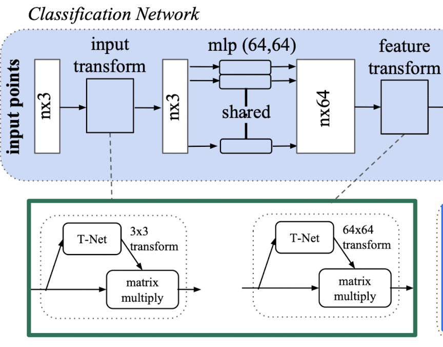 3. ์ ๋ ฅ ์ ๊ณผ ์ ํน์ง์ ์ ๋ ฌํ๋ ๋๊ฐ์ ๊ณตํต ์ ๋ ฌ ๋คํธ์ํฌ [PointNet ๊ตฌ์กฐ ๊ทธ๋ฆผ์์ ์ด๋ก ์์๋ถ๋ถ]