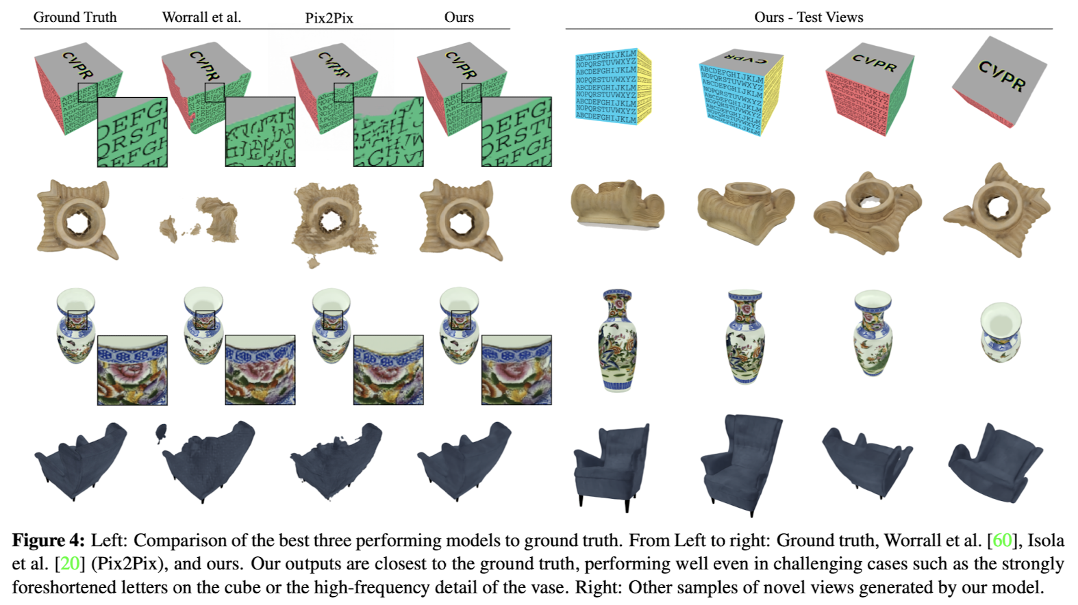• ์ ์๋ ๋ชจ๋ธ์ ํ๋ฆฌํฐ์ ์ผ๋ฐํ ์ธก๋ฉด์์ Baseline๋ณด๋ค ๋ฐ์ด๋๋ฉฐ, ๋์ ์ ์ธ ๊ฒฝ์ฐ์์๋ ๊ฐ๋ ฅํ 3D ์ถ๋ก ์ ๋ณด์ฌ์ค.