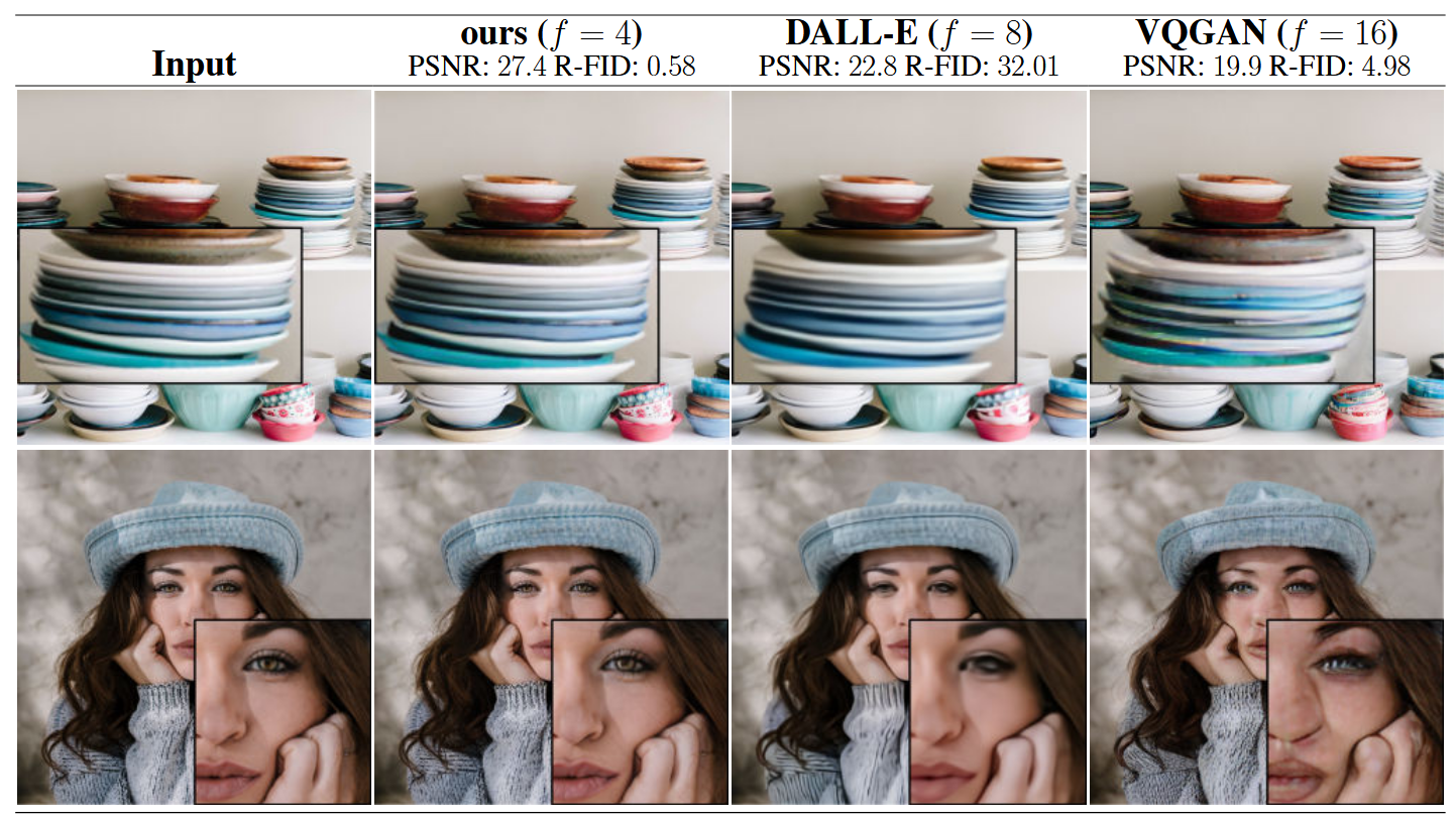 - ํจ์จ์ ์ธ ๊ณ ํด์๋ ์ด๋ฏธ์ง ์์ฑ์ ์ง์ํ์ง๋ง, ์ํ ํ์ง์ด GAN๋ณด๋ค ๋ฎ์