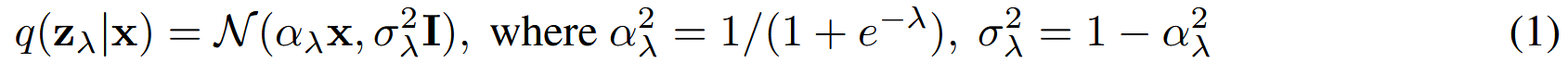 - q(zλโฃx): ๋ฐ์ดํฐ x ์ ๋ ธ์ด์ฆ๋ฅผ ์ถ๊ฐํ ๊ฒฐ๊ณผ์ธ zλ์ ํ๋ฅ ๋ถํฌ(๊ฐ์ฐ์์ ๋ถํฌ)