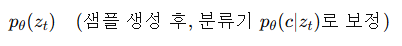 - ∇zโ log pclassifierโ(cโฃz): ๋ถ๋ฅ๊ธฐ์ ๊ทธ๋๋์ธํธ