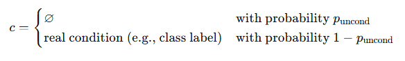- ํ๋ฅ ์ ์ผ๋ก ์กฐ๊ฑด์ ์ ๊ฑฐํ์ฌ Unconditional ๋ฐ์ดํฐ๋ฅผ ํจ๊ป ํ์ตํฉ๋๋ค.