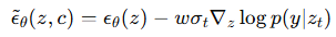 - ฯต~θ(z,c)=(1+w)⋅ฯตθ(z,c)−w⋅ฯตθ(z)