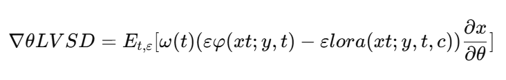 - VSD ๋ ์ ์ฐจ์ ์ ์(LoRA; Low-Rank Adaption) ๊ธฐ๋ฒ์ ์ฌ์ฉํ์ฌ Diffusion ๋ชจ๋ธ์ ์ ์์ ์ผ๋ก ํ์ฉ