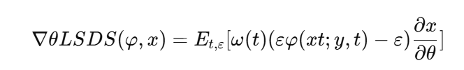 ∂θ/∂xโ : 3D ๋ชจ๋ธ ํ๋ผ๋ฏธํฐ(θ)๊ฐ ์ด๋ฏธ์ง(x)์ ๋ฏธ์น๋ ์ํฅ(์ฆ, 3D ๋ชจ๋ธ์ ์ ๋ฐ์ดํธํ๋ ๋ฐฉํฅ). - Diffusion ๋ชจ๋ธ์ด 2D ์ด๋ฏธ์ง์์ ์์ธกํ ๋ ธ์ด์ฆ( εφ ) ๊ฐ ์ต์ํ๋๋๋ก 3D ํํ(θ)์ ์ ๋ฐ์ดํธ