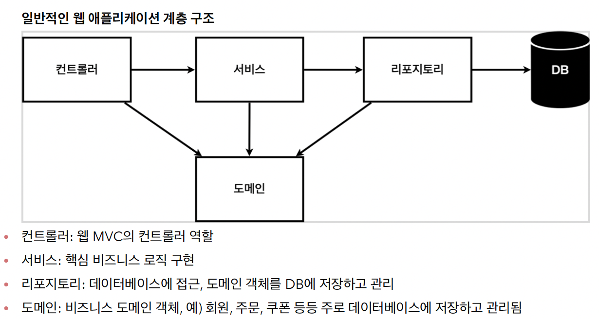 서비스 ex) 회원 아이디가 중복될 수 없는것과 같은 비즈니스 로직 구현