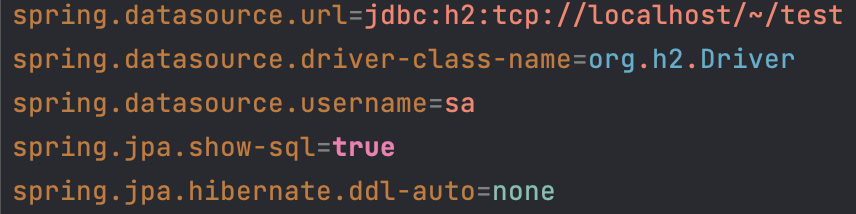 - ddl-auto : JPA는 테이블을 자동으로 생성하는 기능을 제공하는데 none 를 사용하면 해당 기능을 끈다.