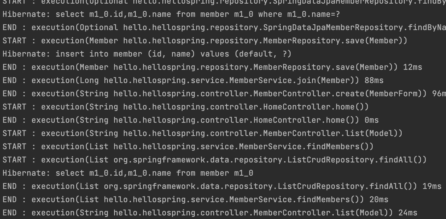 spring 실행 콘솔에서 시간 측정이 제대로 되는것을 확인할 수 있다.