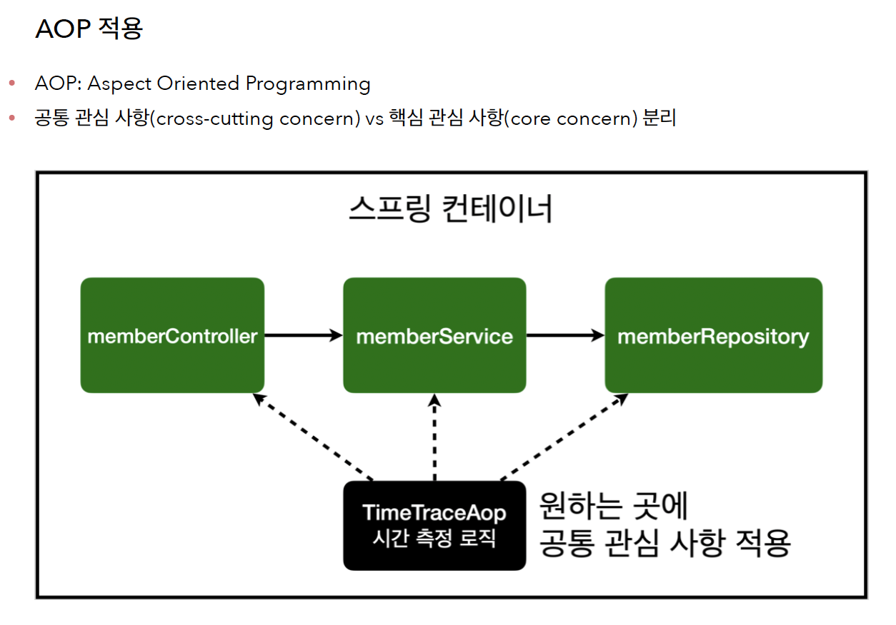 - 회원가입, 회원 조회등 핵심 관심사항과 시간을 측정하는 공통 관심 사항을 분리한다.