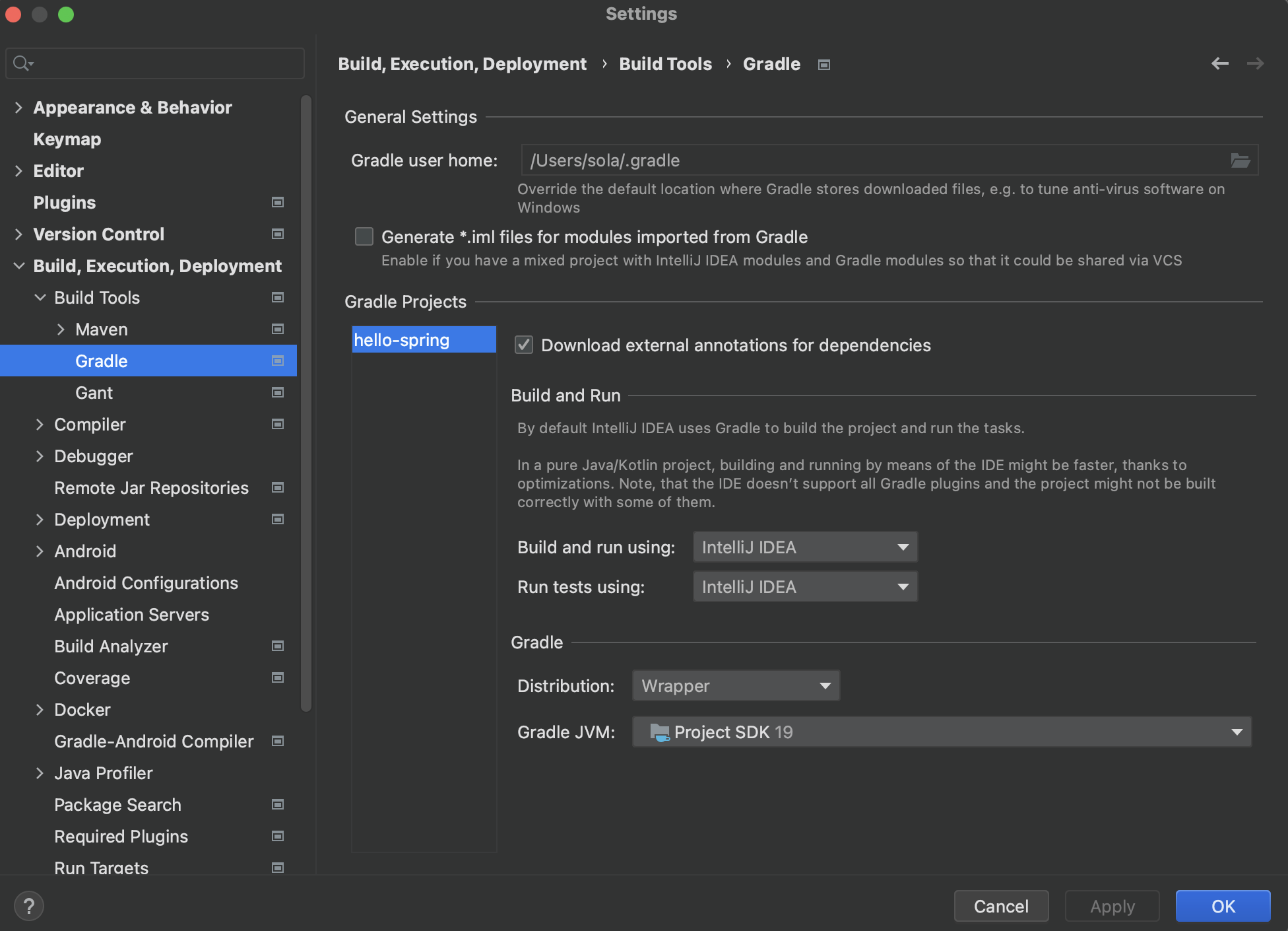 Preferences Build, Execution, Deployment Build Tools Gradle