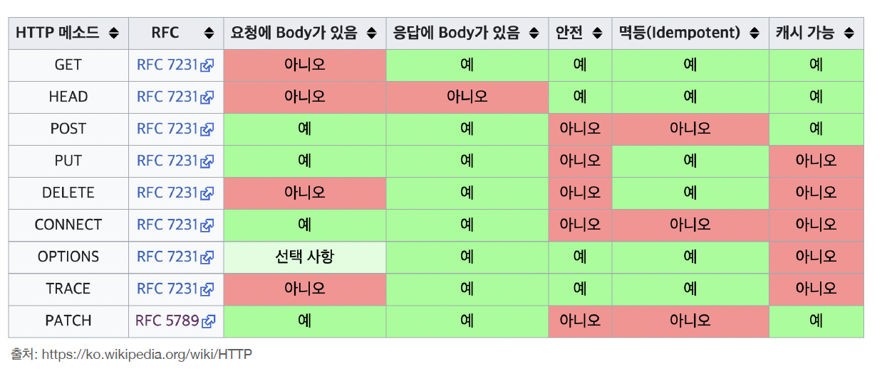 - 멱등 : 한번 호출하든 두번 호출하는 100번 호출하든 결과가 똑같다