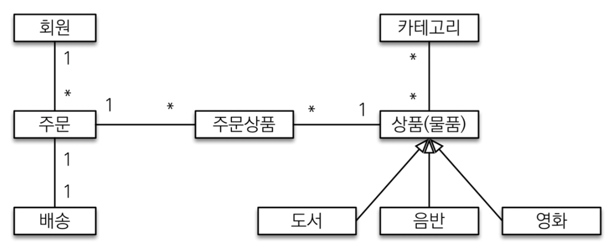- 한번 주문시 여러 상품을 주문할 수 있으므로 주문과 주문 상품(OrderItem)은 일대다 관계다.