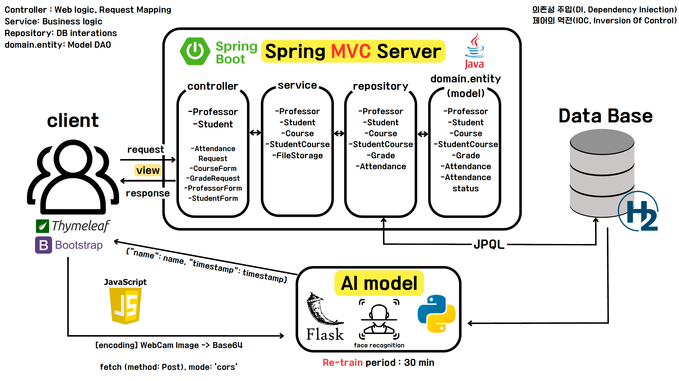 - 클라이언트에서의 응답 처리: 클라이언트는 Flask 서버로부터 받은 응답을 처리하고, 필요한 데이터를 Spring 서버로 전달하는 역할을 수행