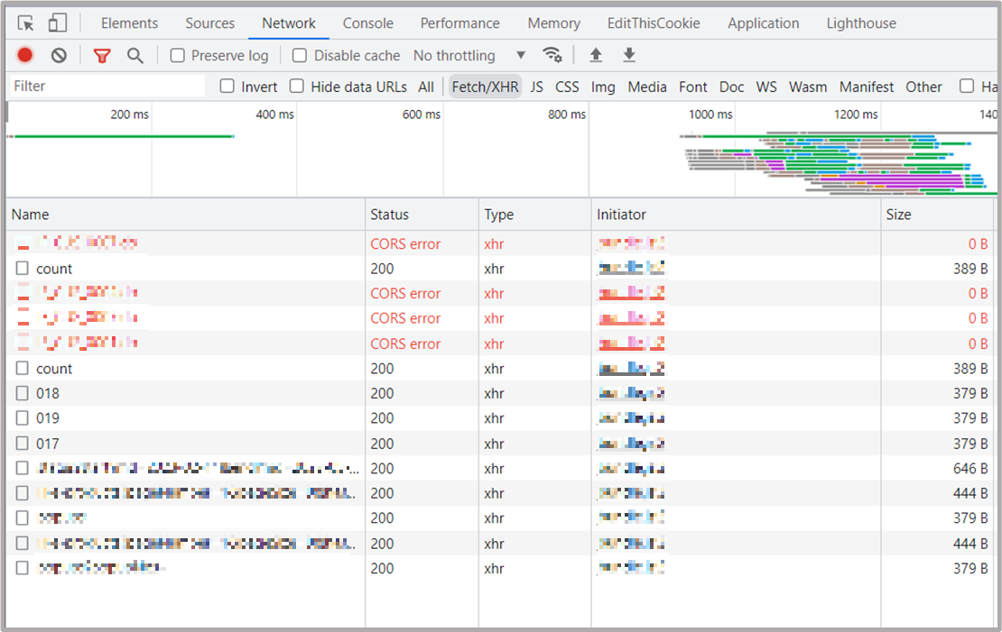 어떻게 찾아냈냐면, 직접 서버들을 돌려보고 웹에서 개발자모드로 network 를 보면, 그 기록에 CORS error이라고 뜬다ㅠ