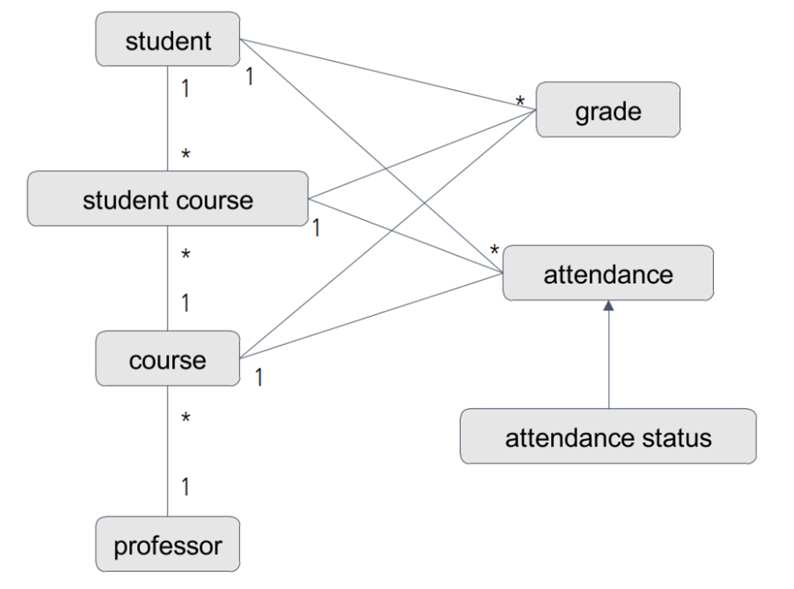 - But, 데이터베이스 상의 오류를 예방하기 위해 일대다, 다대일매핑으로 중간엔티티인 StudentCourse를 설정